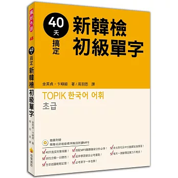 0010689093暢銷專區-40天搞定新韓檢初級單字(隨書附贈韓籍名師親錄標準韓語朗讀MP3)